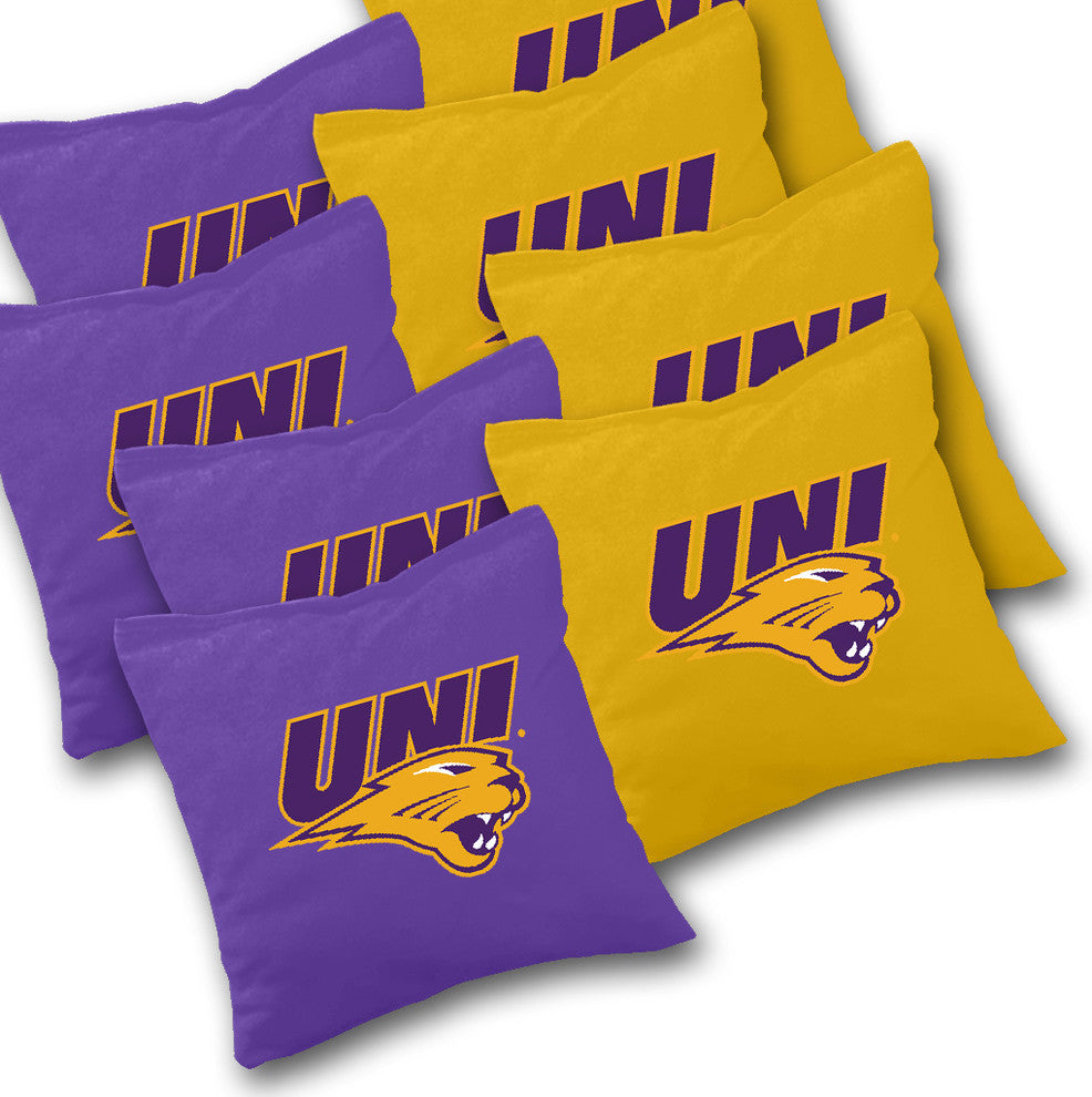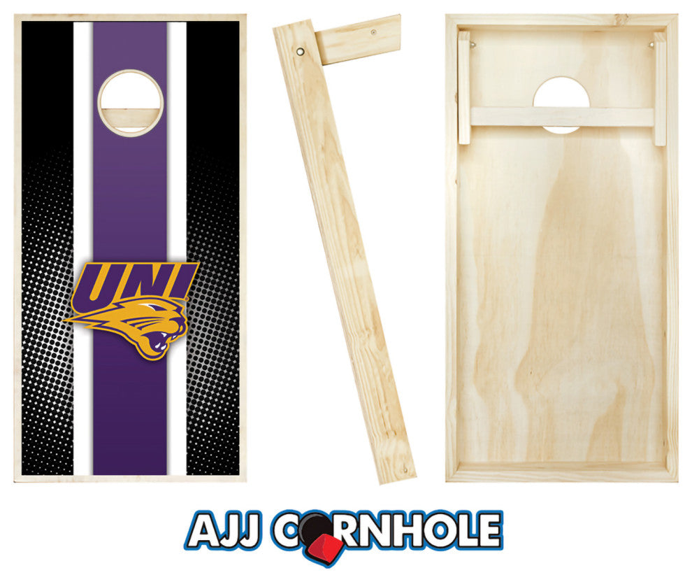 Officially Licensed University of Northern Iowa Cornhole Set. Show off your pride at your next cookout or tailgate with our signature striped design. Cornhole Set comes ready to play right out of the box, no assembly required! Set comes complete with 2 wooden game boards and 8 officially licensed Northern Iowa bags! Officially Licensed Collegiate ProductRegulation Size (2 Feet x 4 Feet)Tournament Grade ConstructionFolding Legs For Easy StorageAll Wood Construction Set Includes 8 Bags. All sets are made using a premium 2x4 frame and 1/2" sanded plywood playing surface. Each set has folding 2x4 legs secured with galvanized bolts.