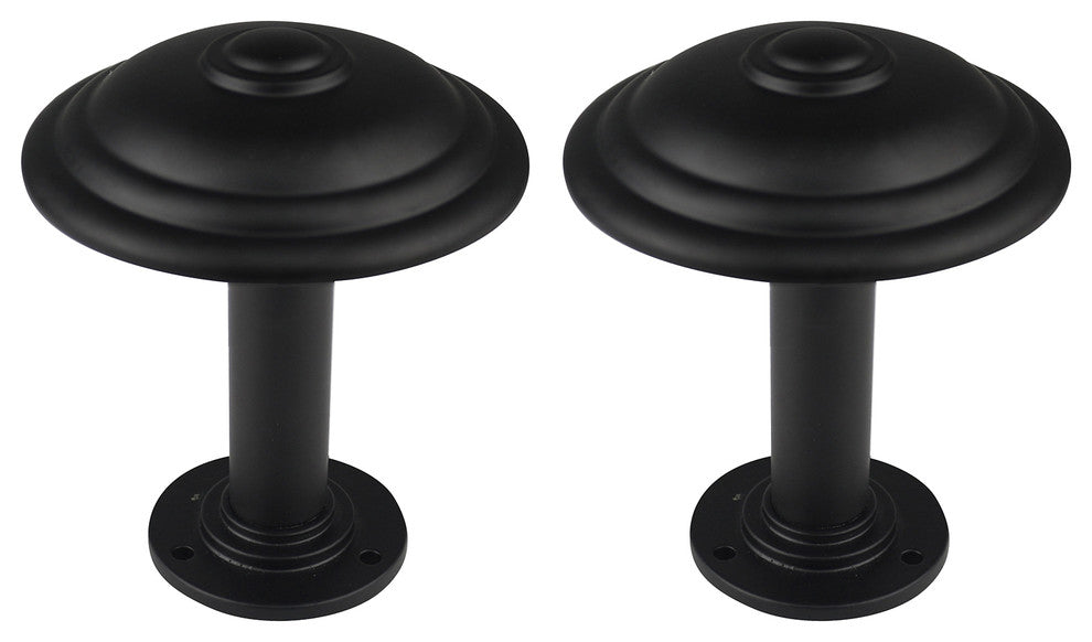 Our all-metal construction medallion holdbacks are a stylish way to hold back your curtains.Each medallion measures 3 1/2" in diameter, with a 3 1/4" projection from the wall. The mounting plate measures 2" across.Available in 7 finishes: Black, Glossy White, Bronze, Brushed Steel, Antique Brass, Pewter, and Antique Gold.Mounting hardware included for easy installation.List price is for two holdbacks.