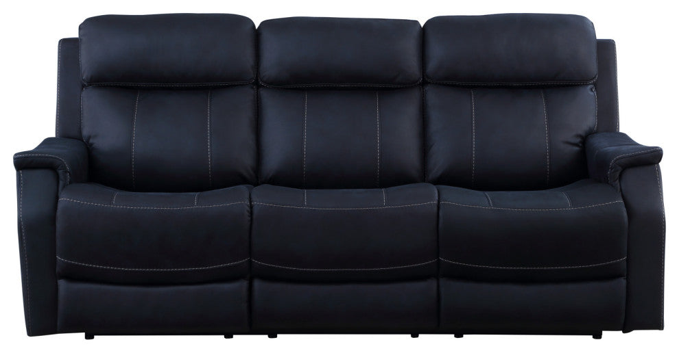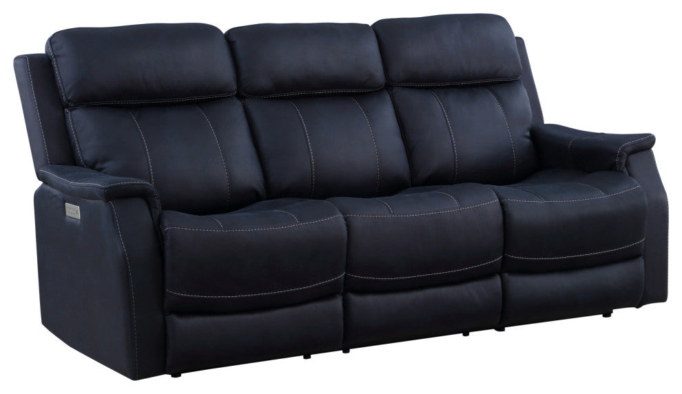 A smartly tailored Reclining Sofa with gentle shaped seats and a luxurious nubuck leather-like cover, the Valencia Sofa has power headrest and power footrest in a clean contemporary silhouette. Hand-stitching that mirrors the shaped seat and a svelte scoop arm are some of the many details that make this frame specials. A control panel on each end controls the power and comes with a convenient USB charging port.