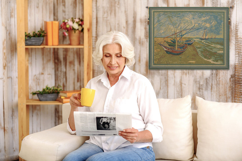 Van Goghs Fishing Boats Belgian Wall Tapestry