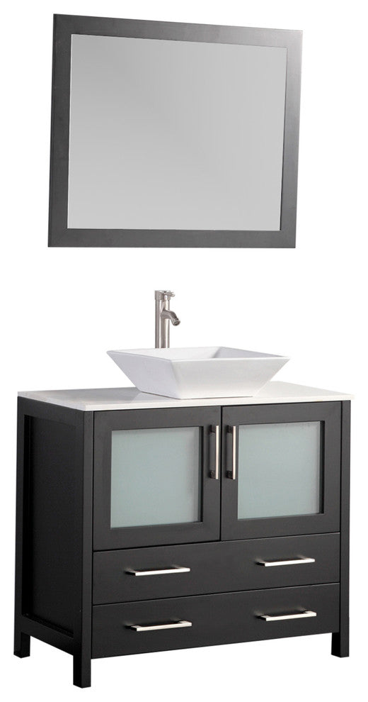 Add valuable storage space and cool, contemporary style to your bathroom with this cabinet by Vanity Art.Accent cabinet3 soft-closing drawersEngineered marble countertopIncludes hardware1-year parts warranty against manufacturer defectsColor: EspressoMaterial: Oak and plywoodSink Dimensions: 16.1" W x 16.1" D x 4.7" HDimensions: 11.8" W x 18.5" D x 29.1" H
