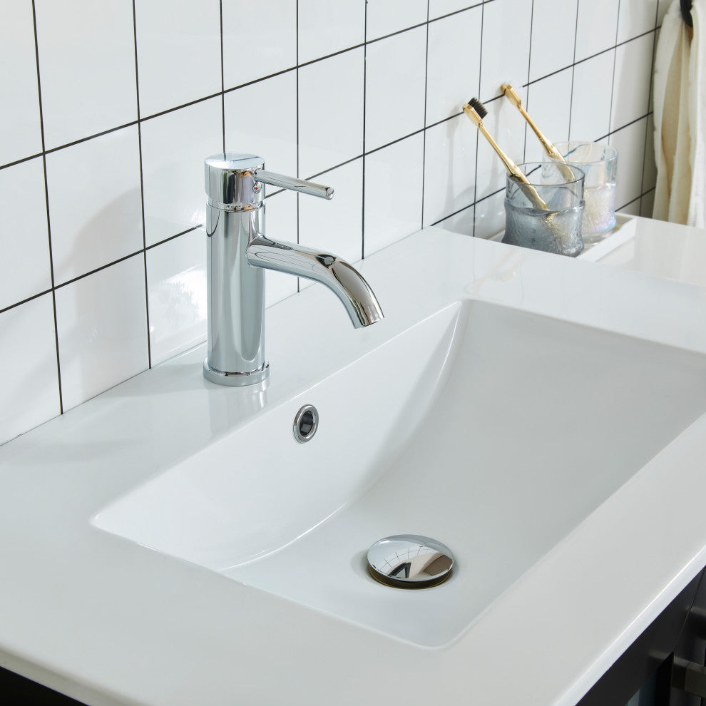 Let the clean-lined look of this vanity by Vanity Art guide your bathroom toward a cool, contemporary design. Single-sink vanity set with 24" vanity and 12" cabinetIncludes standard mirror, countertop, sink basin and cabinet hardwareDoes not include faucetCeramic countertopSoft-closing hardware1-year parts warranty against manufacture defectsColor: EspressoMaterials: Solid + Manufactured Wood, MirrorMirror dimensions: W 23" x H 27.5"Cabinet dimensions: W 12" x D 18" x H 31"Vanity dimensions: W 36" x D 18.1" x H 35.8"