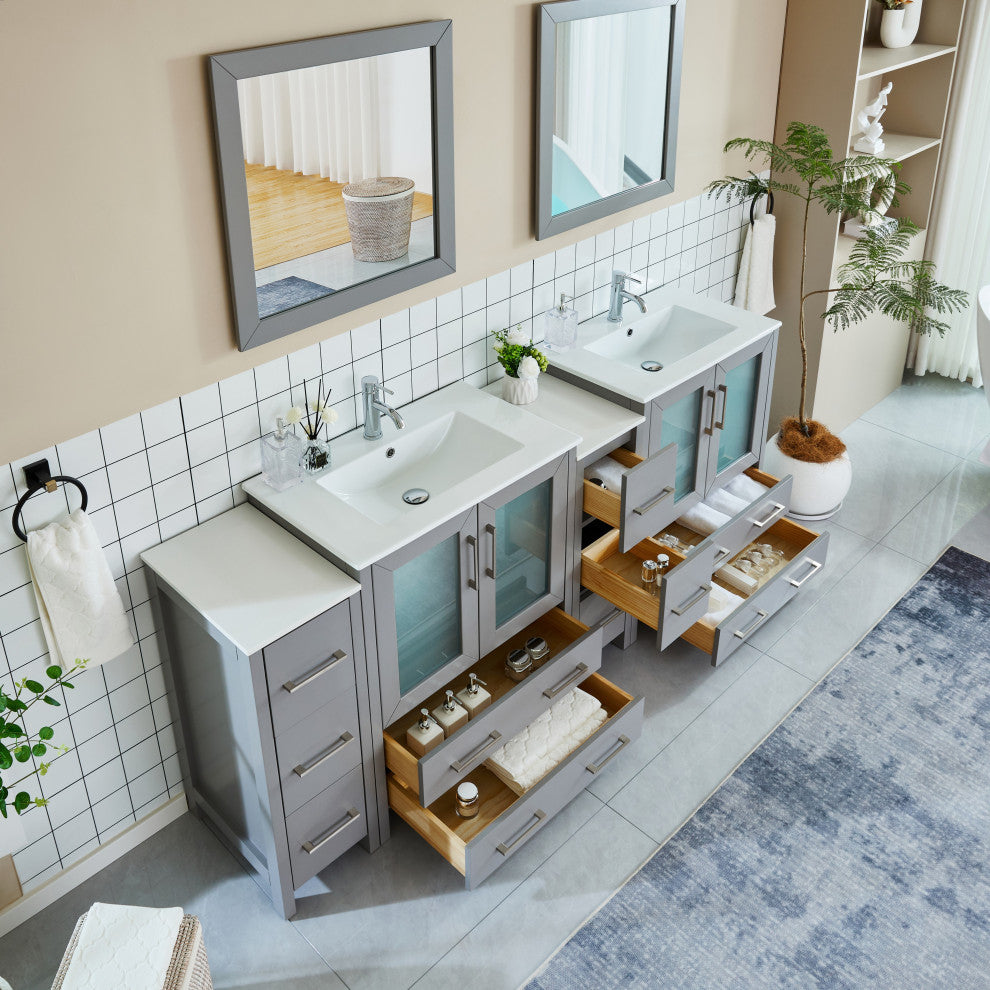 Vanity Art Vanity Set With Ceramic Top, 84", Gray