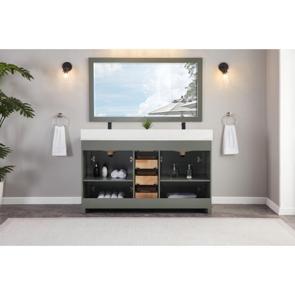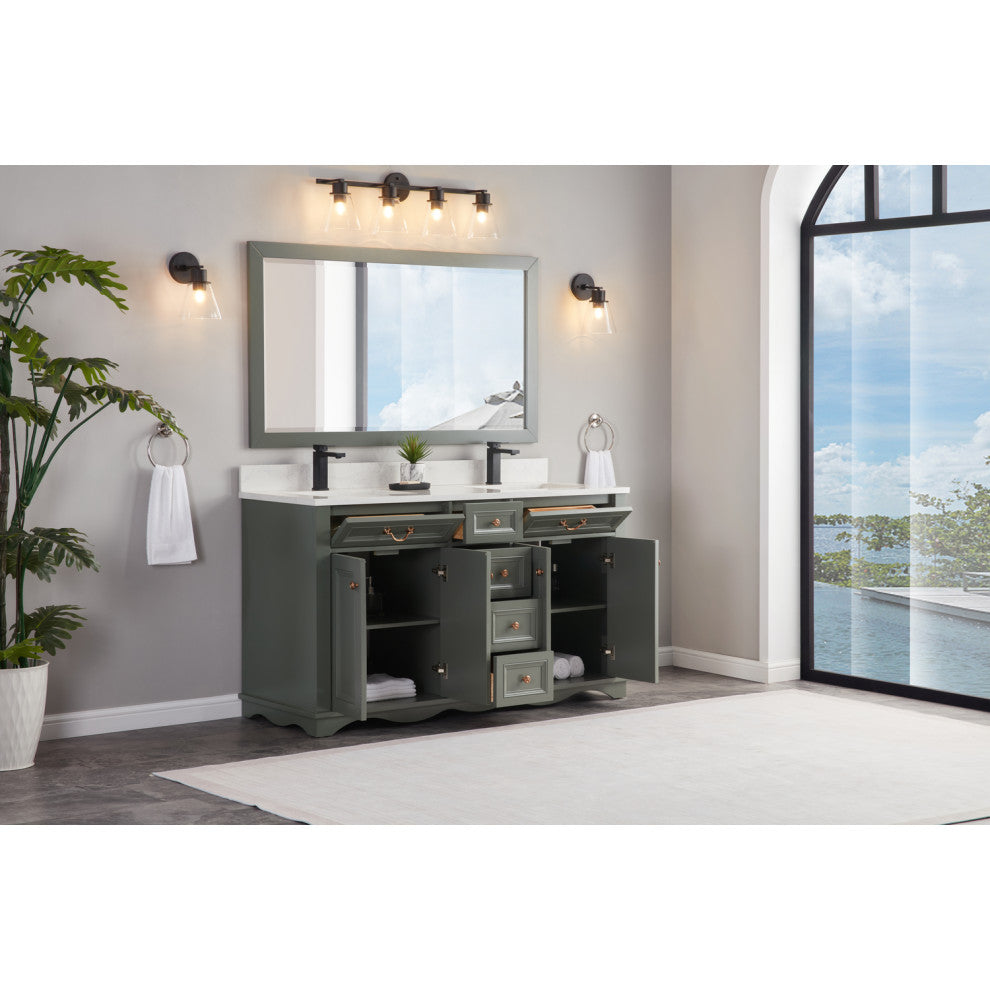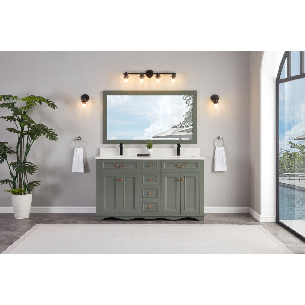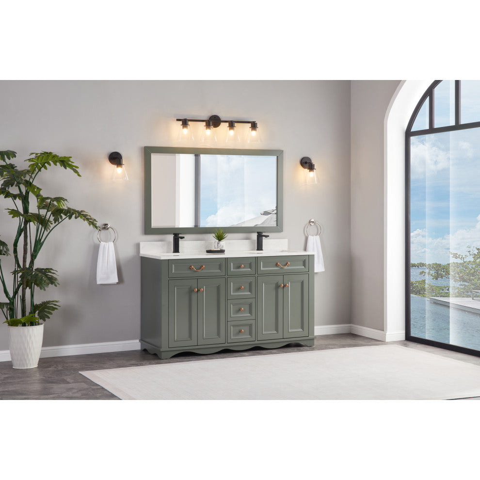 Vanity With Mirror, Sconce and Faucet Included, Pewter Green, 60"