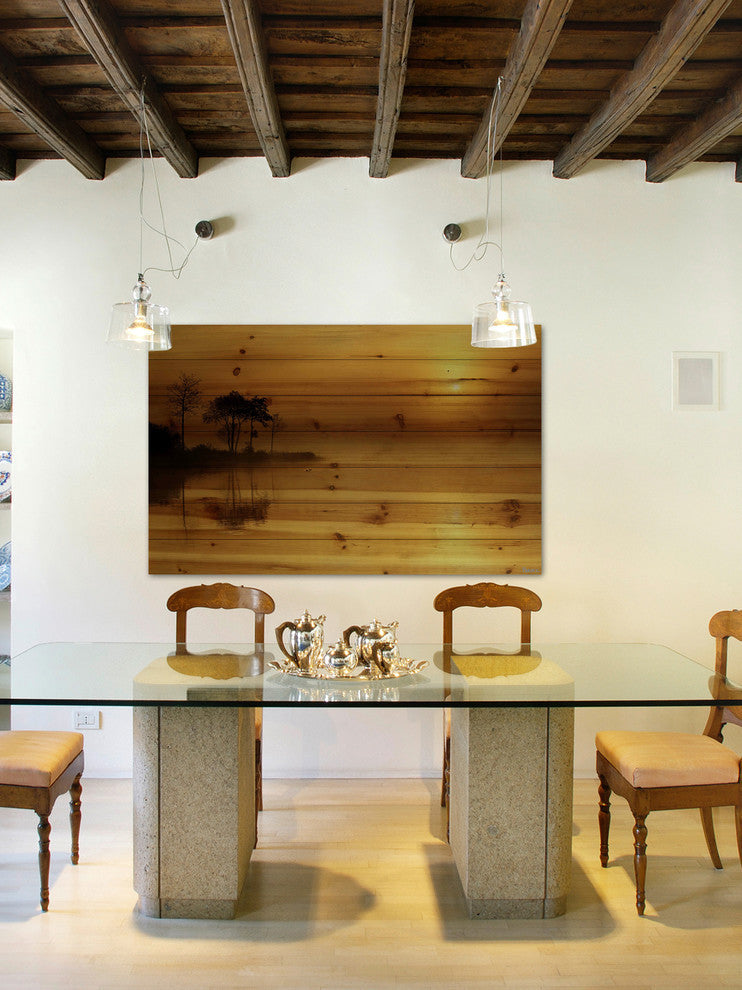 Striking and unique, the "Vaughan" UV Ink Print on Natural Pine Wood by Parvez Taj will bring your walls to life. Printed on white pine wood, this 36 inch wide by 24 inch tall rustic artwork will make a statement in any living room, dining room, or bedroom.- Fine art print on natural pine by Parvez Taj- wood pieces are hand-selected by Fine craftsmen for printing- Arrives ready to hang- Includes a certificate of authenticity- Artist signature on the front