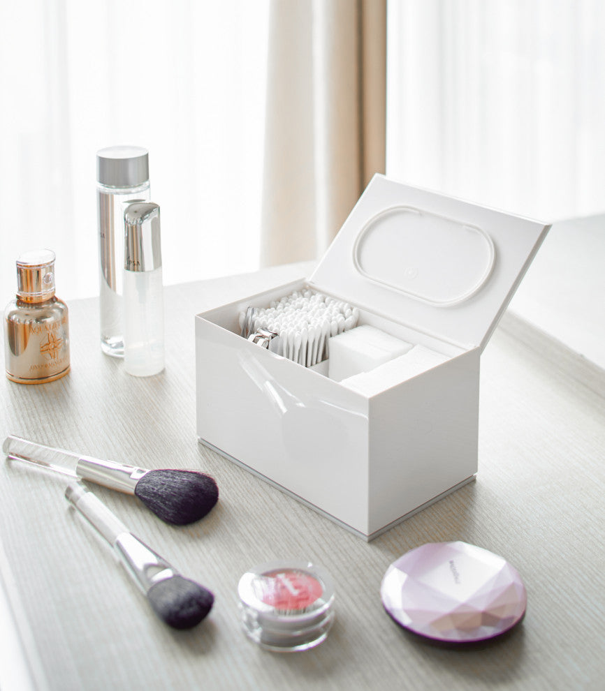 Yamazaki veil cotton case can hold cotton swabs and cloths and other grooming accessories. Use it for all of your makeup-removing tools or just for streamlined storage. [Details]