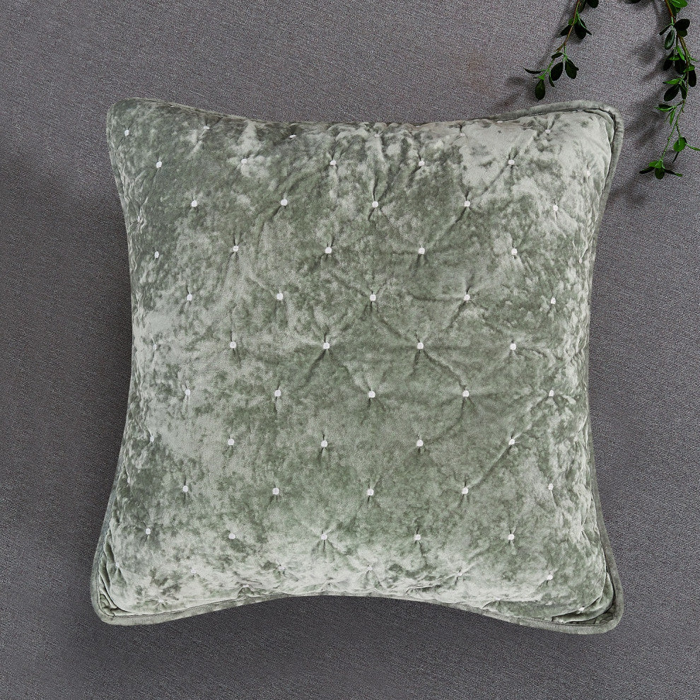 Velvet Dreams Light Green Plush Diamond Tufted Bedspread, 26x26