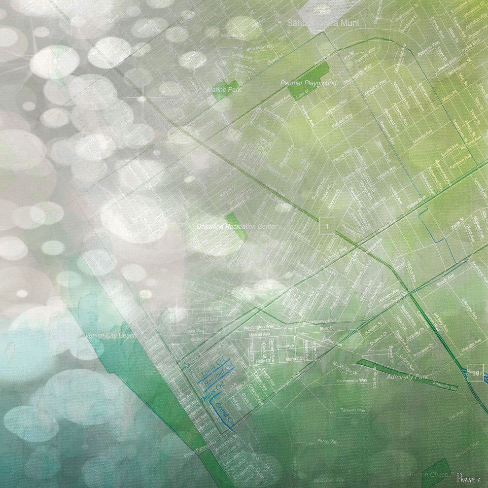 Striking and unique, the "Venica, CA" Print on Canvas by Parvez Taj will bring your walls to life. Printed on canvas, this 32 inch wide by 32 inch tall contemporary artwork will make a statement in any living room, dining room, or bedroom.- Fine art canvas print by Parvez Taj- Professionally hand stretched- Gallery wrapped in sustainable, non-warping wood- Arrives ready to hang- Made in the USA- Includes a certificate of authenticity- Artist signature on the front