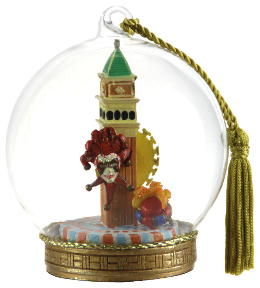 The festive spirit of this enchanting Italian city is presented in this Flavia Milano Memory Globe with St. Mark''s Campanile, the bell tower of the famous piazza, center stage. We''ve adorned it with lively carnivale masks which altogether create a scene that calls to mind the mirth and charm of your travels there. Decorated with a tassel 3.5"D x 4"H