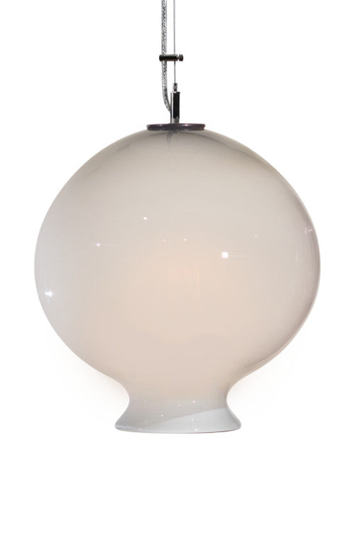Hand-blown glass pendant by designer Joe Ginsberg. Each pendant in this collection is unique and will vary slightly due to the handmade process of glass blowing. The lighting fixture includes nickel plated hardware with a 5 inch canopy; 6 ft. braided steel electrical cord and an Edison-style Filament bulb. 60w; 120v. Made in the USA.