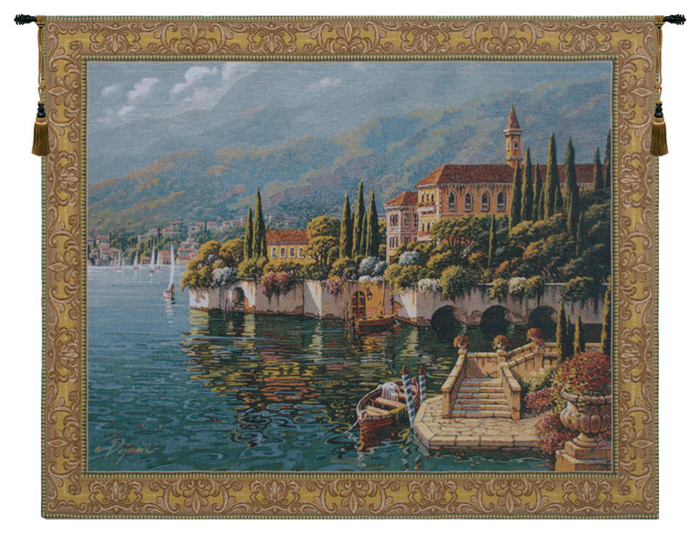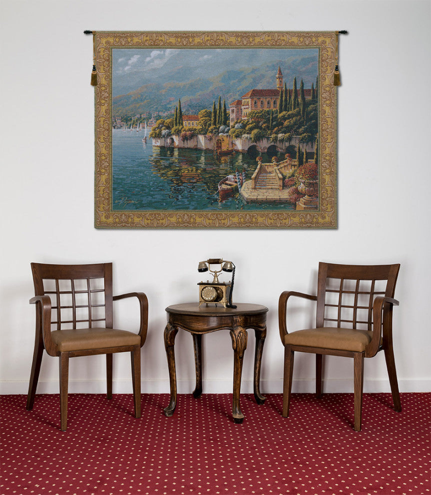 This tapestry shows a scene from Venera, the most heavenly region of Lake Como, Italy. Verena Reflections is a Belgian jacquard wall tapestry featuring the work of artist Robert Pejman.