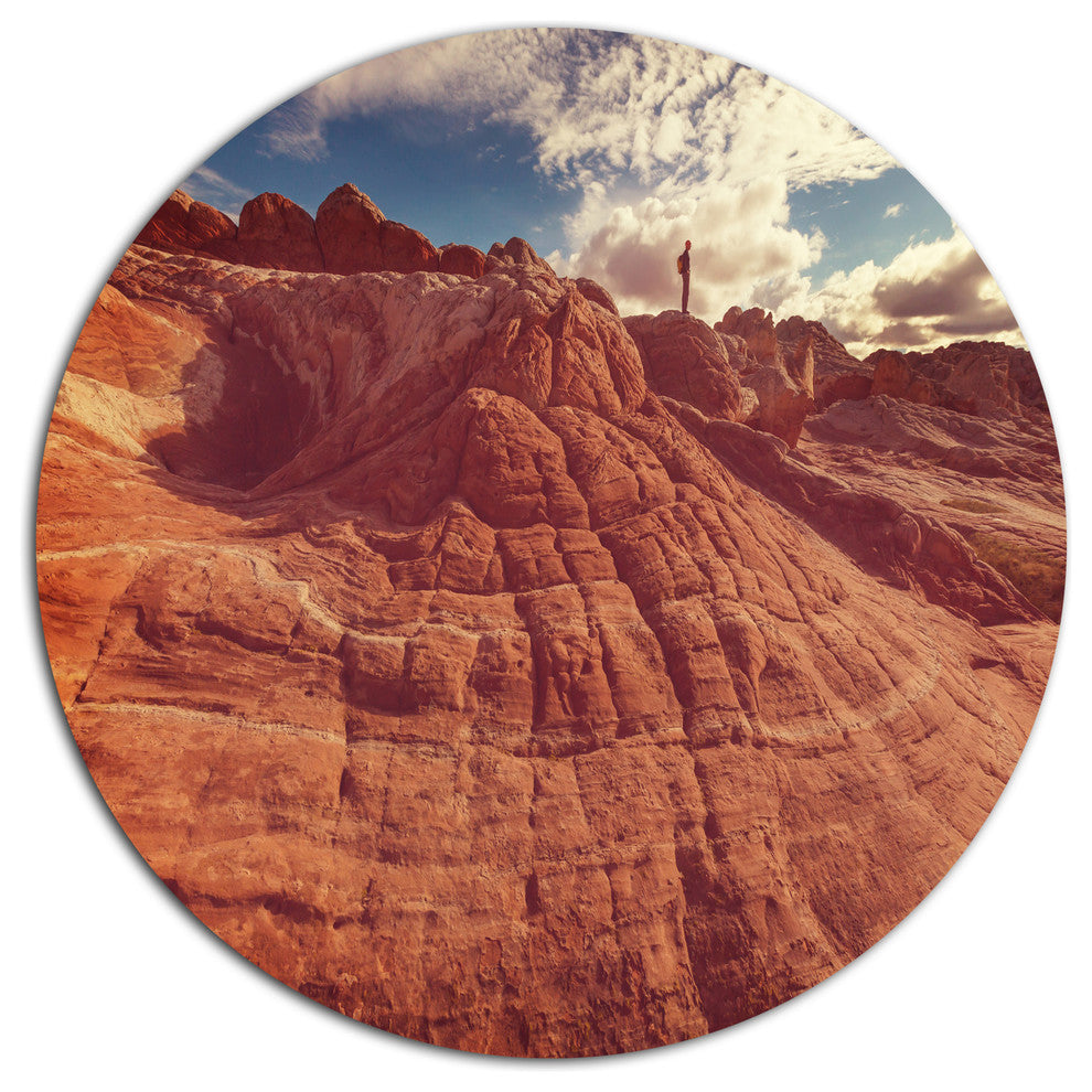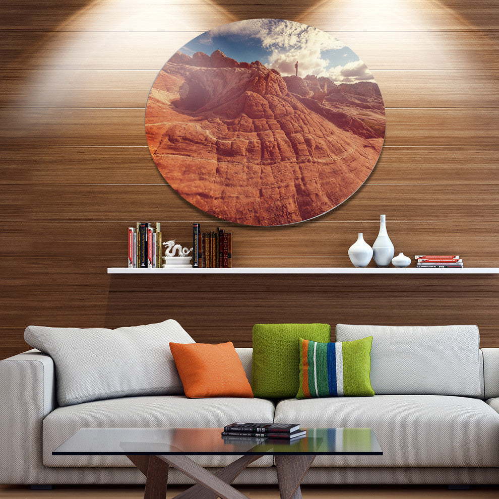 Bring Contemporary Abstraction to your home with this large Circle Metal wall art. This Vermilion Cliffs At Sunrise Metal Artwork makes it the focal point of any room or office.