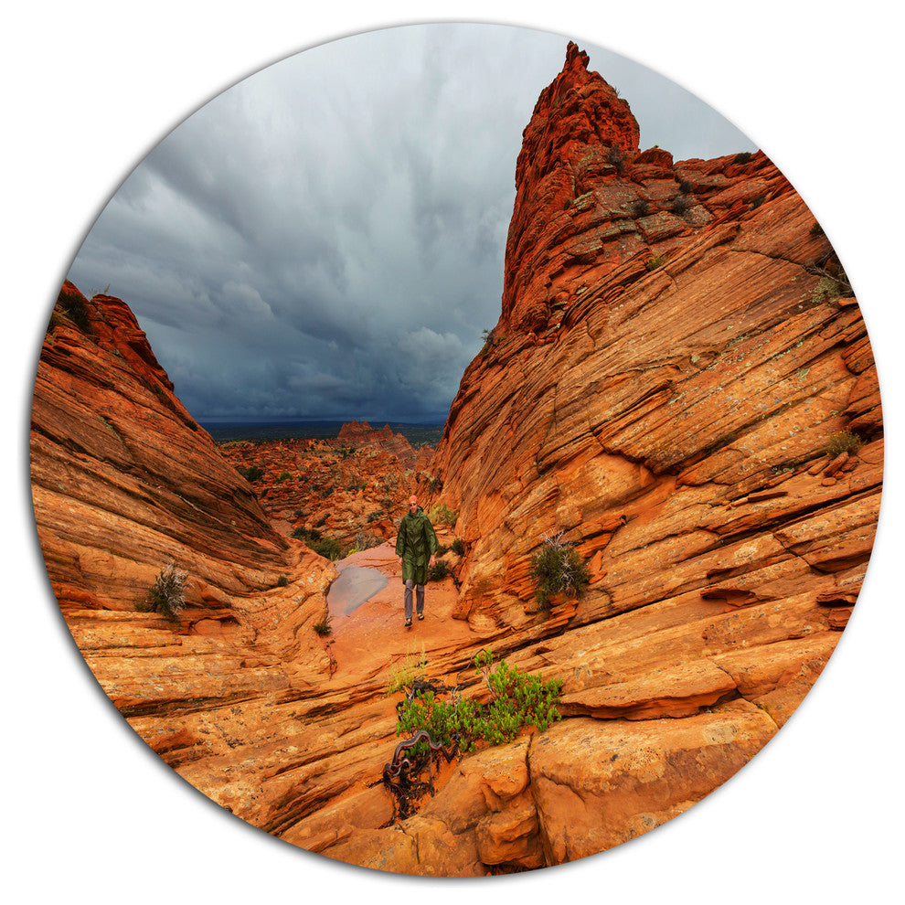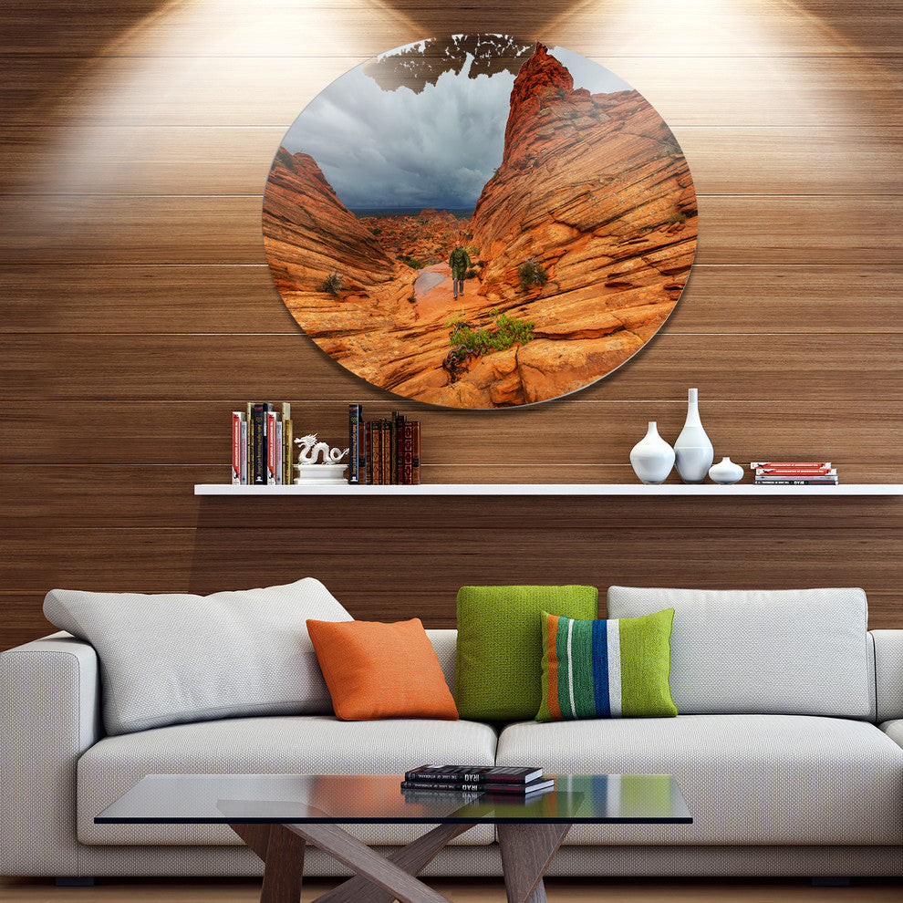 Bring Contemporary Abstraction to your home with this large Circle Metal wall art. This Vermillion Cliffs Wilderness Metal Artwork makes it the focal point of any room or office.