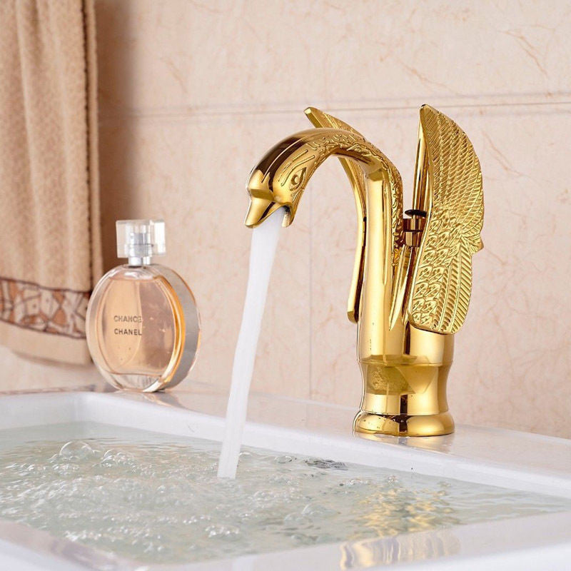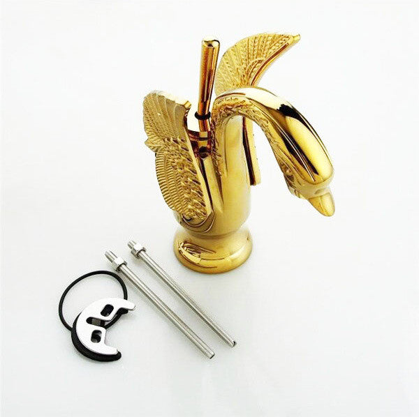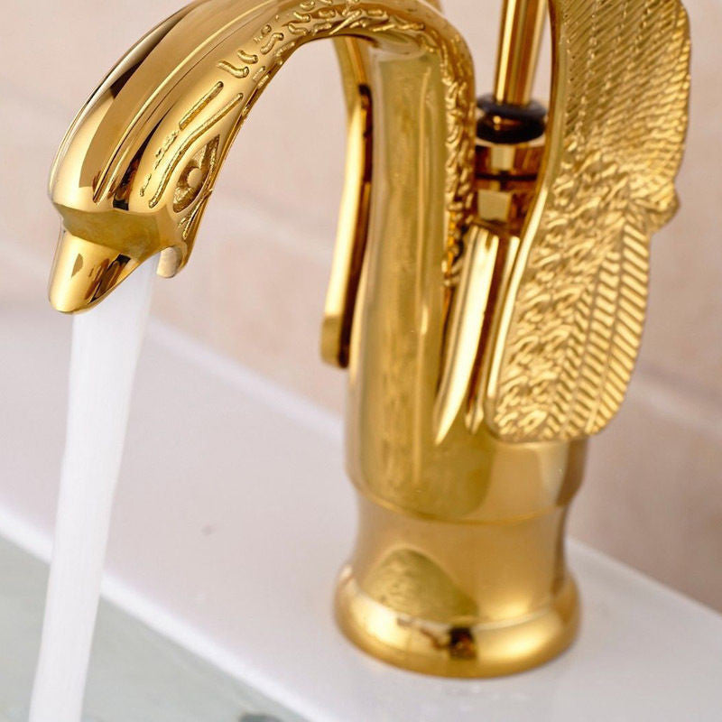 Verona Swan Gold Vanity Sink FaucetVerona Faucet DescriptionTypeVanity FaucetStyleClassicNumber of HandlesSingle HandleStyleSingle Holder Single HoleFaucet MountSingle HoleValve Core MaterialCeramicModel NumberFS6121SGBrand NameBathSelectHot & Cold WaterYesSurface TreatmentTi-PVDWarranty5-YearsTypeCeramic Plate SpoolInstallation TypeDeck MountedVerona SpecificationsDimensionsOverall Height7. 5" (190 mm)Spout Height4. 7" (120 mm)Spout Length3. 9" (100 mm )Faucet centerSingle HoleMaterialFaucet Body MaterialBrassFaucet Spout MaterialBrassFaucet Handle MaterialBrassAccessoriesValve IncludedYesDrain IncludedNo- Comes with all necessary accessories for installation. - Featured with durable ceramic valves ensuring there are no water leaks. - Available to work more than 600,000 times at a water temperature of 90 degrees. - High quality material and finishing tested at a high water pressure of 1. 6Mpa.-Flow Rate: Maximum 1.8 GPM-Aerator Included: Minimum .5 GPM
