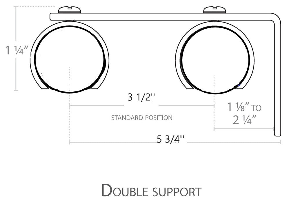 Supports have two independent cradles with multiple possible projections (see diagram), ensuring your drapes will not rub against any style of moldings