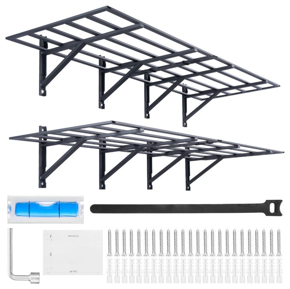Reinforced Construction: The garage shelving wall mounted is constructed entirely of metal with a sandblasted surface, featuring reinforced front-side beams and two additional steel wires measuring 72.05 x 24.8 x 12.01 inches (W x D x H) to accommodate more items.