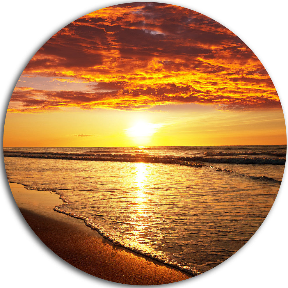 Vibrant Yellow Sun And Calm Waves, Seashore Disc Metal Wall Art, 36"