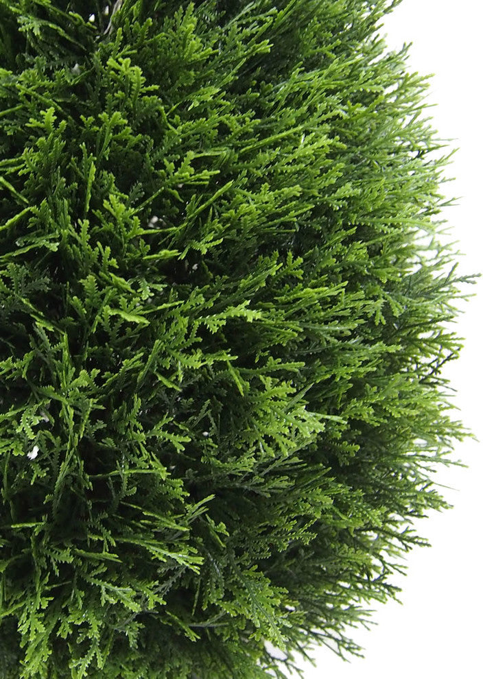 Vickerman 24" Artificial Potted Cedar Teardrop Shaped Bush. Add a touch of greenery to your patio or home decor with Vickerman''s 36-inch Tall Teardrop Shaped Faux Cedar Bush. With its realistic look and fine details, this faux plant will enhance any space without requiring maintenance. The teardrop shape adds a unique twist to the classic cedar tree, making it a standout piece that will surely impress. This bush comes in a black plastic pot, but you can easily place it in a decorative container of your choice to match your style. Perfect for outdoor or indoor use, this artificial plant is UV-protected. This Artificial Cedar Spiral Topiary is perfect as a centerpiece for any space. It adds a touch of elegance and sophistication to any room or outdoor setting. This Cedar Topiary is suitable for home decor, landscaping, and garden. It comes in a black plastic pot, but you can easily place it in a decorative container of your choice. Vickerman has been an industry leader in quality, design and manufacturing since 1940.