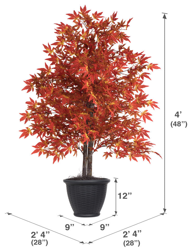 Vickerman Artificial Orange Maple Tree Made with real Tag Alder trunks. The real-wood trunks differ in width to give a realistic, natural fullness. Easy to care for, maintenance free, an occasional light dusting is all that is needed.