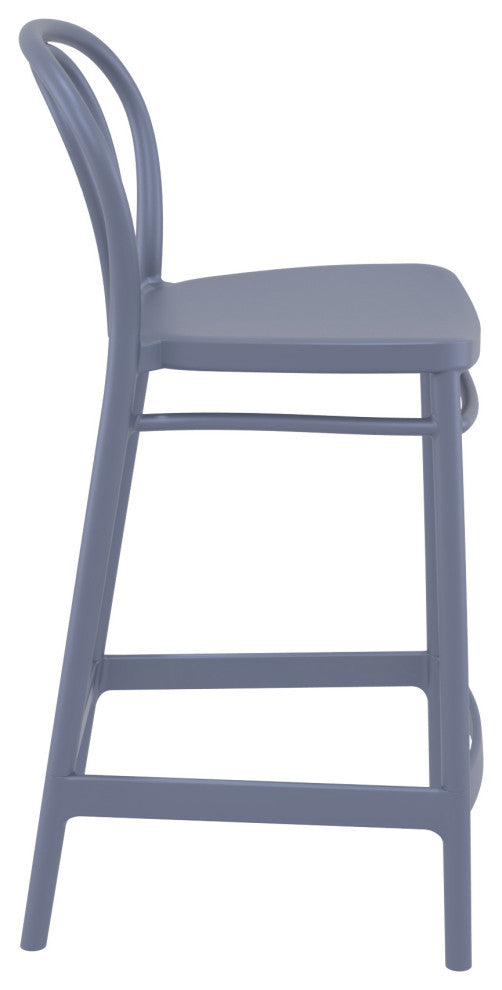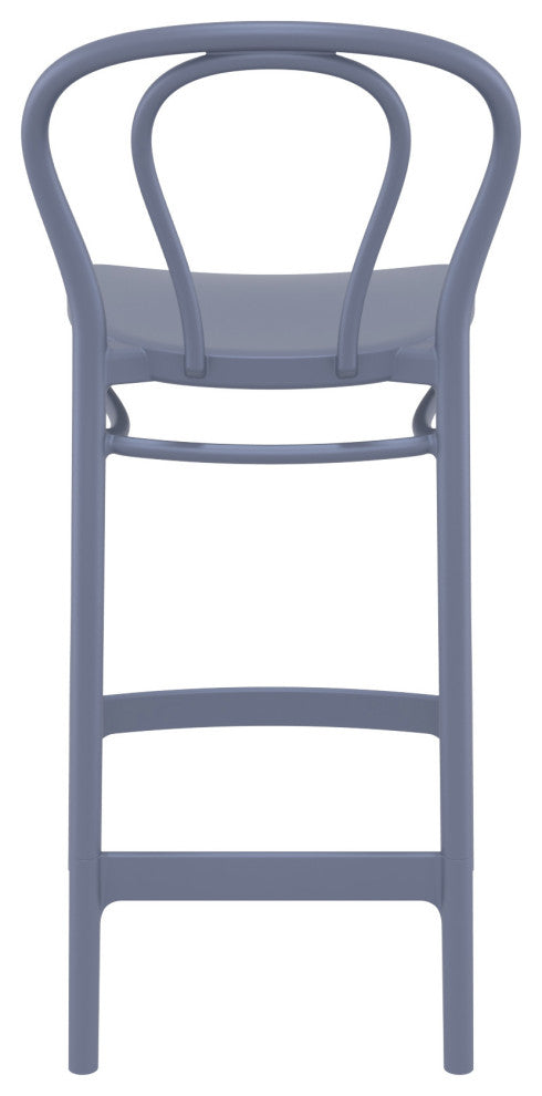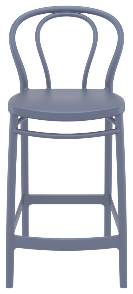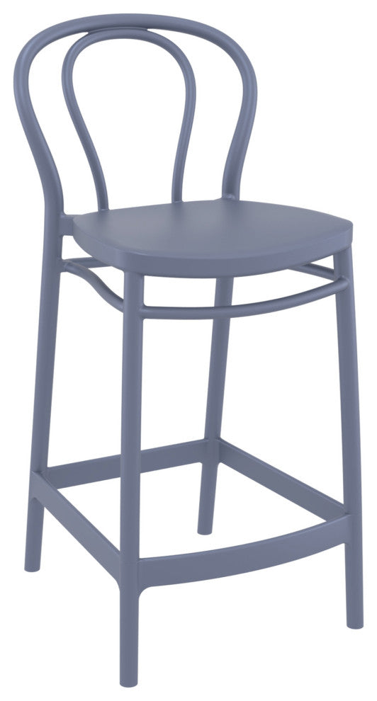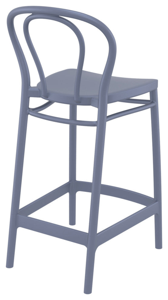 Outdoor counter high chair. Classic design. Made from polypropylene resin with gas injection molded legs. Suitable for indoors and outdoors. Perfect for heavy use areas. Suitable for restaurants, cafes and hotels.