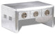 vidaXL Aviator Coffee Table 3 Drawers Vintage Aircraft Airman StylevidaXL Aviator Coffee Table 3 Drawers Vintage Aircraft Airman Style - 242119, This high-quality aviator coffee table can be placed in any room. Thanks to the sleek and compact design, it can also be used as a side table, a bedside table, an end table, etc. This aircraft coffee table has three drawers for small items like keys, notepads, pens, and other knick-knacks. The tabletop can be used to place food or drinks or to display decorative objects like photo frames, or even potted plants. This airmen coffee table is made of solid wood and its surface is clad with a patchwork of polished aluminum panels, accented with exposed steel screws, which makes it extremely durable. Smooth edges and the retro drawer handles give the aviator coffee table a unique look.Model No : 242119Brand : vidaXLMaterial: Wooden frame with aluminum panelingTotal size: 31.5" x 20" x 15.7" (L x W x H)Accented with steel screwsWith 3 drawers lined with black cotton canvasColor: Silver