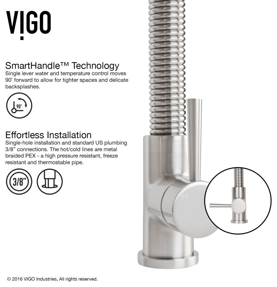 VIGO Edison 19" H Single Handle Pull-Down Sprayer Kitchen Faucet, Stainless Steel, No Sensor, With Deck Plate