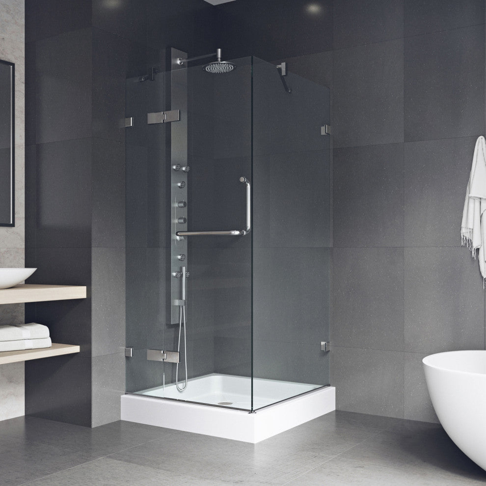 VIGO Monteray 32''D x 32"W x 79"H Frameless Hinged Shower Enclosure, Chrome, With Base
