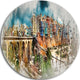 Villajoyosa Town Digital Panorama, Cityscape Disc Metal Wall Art, 23"