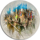 Bring Contemporary Abstraction to your home with this large Circle Metal wall art. This Villajoyosa Town Watercolor Metal Artwork makes it the focal point of any room or office.