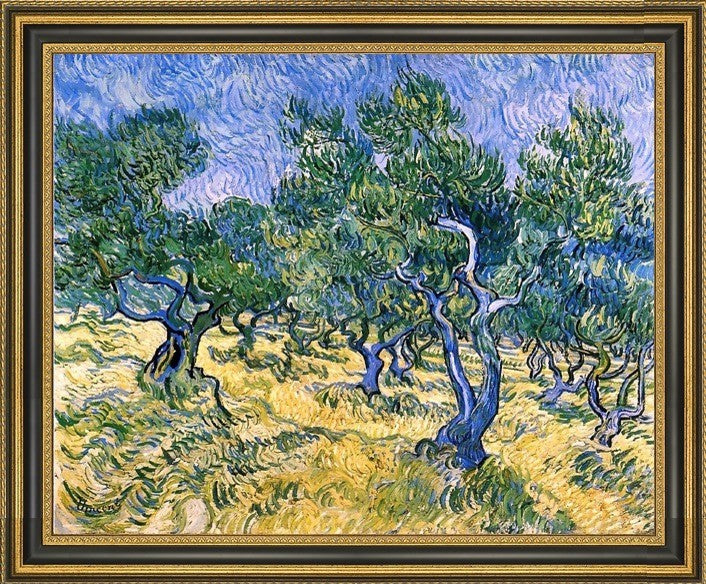 20" x 25" Vincent Van Gogh Olive Grove framed premium canvas print reproduced to meet museum quality standards. Our Museum quality canvas prints are produced using high-precision print technology for a more accurate reproduction printed on high quality canvas with fade-resistant, archival inks. Our progressive business model allows us to offer works of art to you at the best wholesale pricing, significantly less than art gallery prices, affordable to all. This artwork is hand stretched onto wooden stretcher bars, then mounted into our 3 3/4" wide gold finish frame with black panel by one of our expert framers. Our framed canvas print comes with hardware, ready to hang on your wall. We present a comprehensive collection of exceptional canvas art reproductions by Vincent Van Gogh .