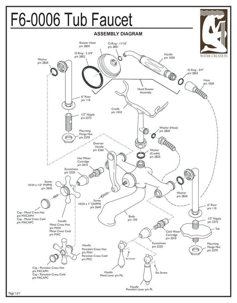 Bring the luxury and elegance of yesteryear to your bathroom with the Vintage Deck-Mount Tub Faucet. It is crafted from solid brass and available in a range of finishes and handle types. It features a hand-held shower and a specially designed faucet to avoid a restricted water flow. Bring a subtle glamour to any space with designs from Water Creation. 0.5" male fittingCeramic disc cartridges Flow rate: 4.85gpm at 60 psiHose length: 60"Faucet centers: 7"Deck mount