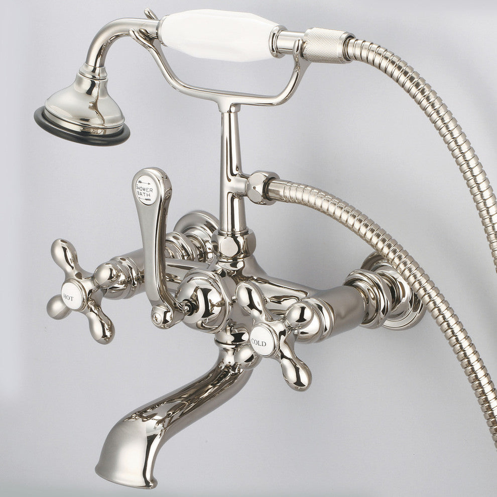 Vintage 7" Spread Wall Mount Tub Faucet & Handheld Shower, Cross handles