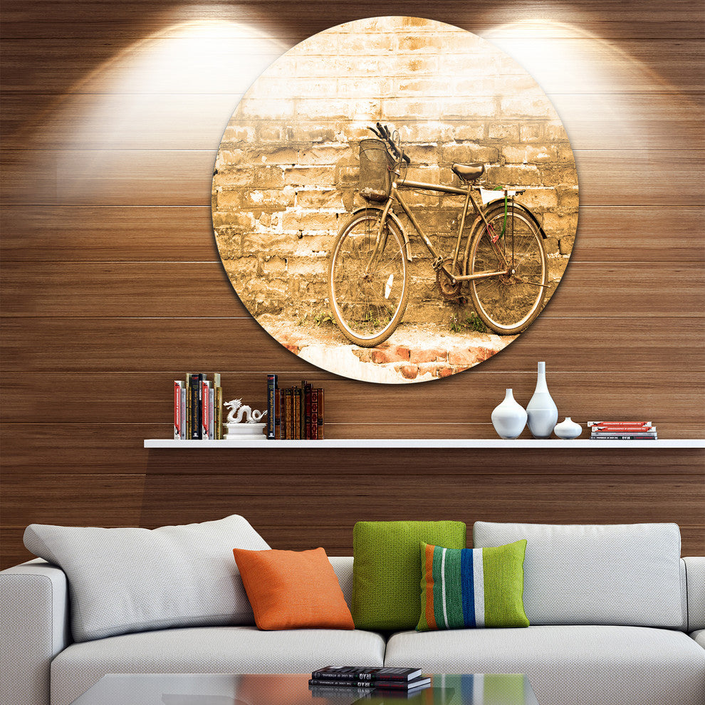Bring Contemporary Abstraction to your home with this large Circle Metal wall art. This Vintage Bicycle against Brown Wall Metal Artwork makes it the focal point of any room or office.