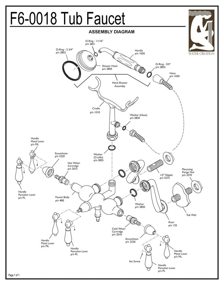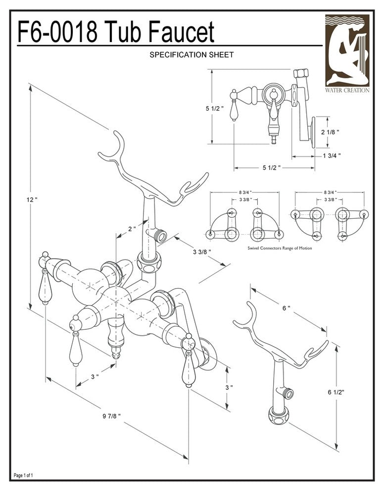 Water Creation''s collection of premier vintage clawfoot bathtub fillers will transform any bathroom''s decor to the luxury and elegance of yesteryear. The crossroads of timeless design and an innovative modern manufacturing processes merge harmoniously to ensure each filler''s finishes and function are as reliable as their unmistakable beauty. Made of 100% brass and adorned with a porcelain shower handle, the heavy weight of Water Creation''s clawfoot bathtub fillers lends credence to the durability and superior craftsmanship that Water Creation is known for. With the understanding that no one customer is alike, Water Creation has gone the extra mile to ensure satisfaction by giving customers the power to customize the handle style of their clawfoot bathtub fillers. Simply select the style that meets your preferences and start enjoying a world-class tub filler that you had a hand in creating. Features:- Premier clawfoot tub filler with hand shower- Solid brass construction- 3.65 gpm at 60 psi flow rate- Lifetime Warranty 1/4 turn drip free ceramic disc cartridges- Matching finish handheld shower included- Vacuum breaker backflow prevention- Solid brass 5 foot coiled hose in matching finish - Designed to meet 100 psi water test pressure- Great for replacing an existing roman tub filler- Elegant downspout design- Easy to install 1/2" male fitting- Matching glass accessories available - Available in triple plated chrome, brushed nickel, oil rubbed bronze, and polished nickel PVD finishes- Available in lever, "Hot" and "Cold" labeled porcelain lever, and porcelain lever handle styles Specifications:- Overall Product Height: 12"- Hose Length: 60"- Spout Reach: 2-1/2"- Faucet Centers: Adjustable 3-3/8" to 8-3/4"- Flow Rate: 3.65 GPM at 60PSI- Weight: 7 lbs.- Material: Solid Brass- Handles Included?: Yes- Number of Handles: 2- Installation Type: Wall or inside bathtub mount- Valve Type: Ceramic disc- Number of Faucet Holes Required for Installation: 2Flow rate for Faucet: 4.4 GPM at 20PSI