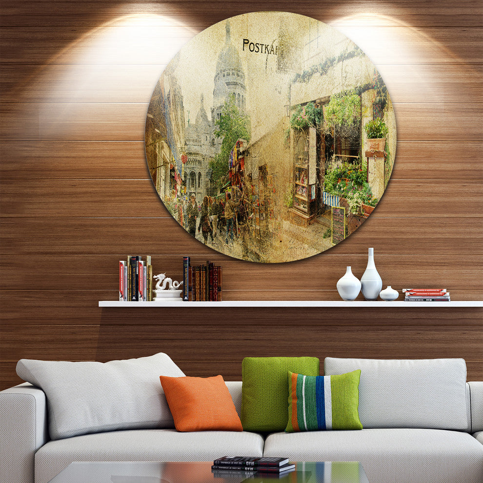 Vintage Parisian Cards, Contemporary Round Metal Wall Art, 23"