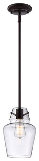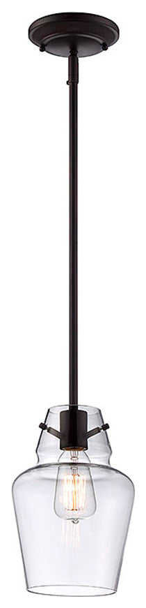 This mini-pendant has streamlined classic style! The understated bulb socket has a rich dark English bronze finish. And the frame holds a curved apothecary jar-shaped shade made of pristine clear glass. One downward-facing 60W E-style bulb allows ample illumination through the clear glass and using an Edison or exposed filament bulb will add to the vintage charm. Overall it has a timeless sophisticated appearance. The pendant is 7 wide 10.5 high and has a 10.5 to 42 adjustable hanging height. It''s a perfect size to hang alone in pairs or grouping several together for maximum impact. And it''s sure to bring vintage appeal to your dining room kitchen living room bedroom hallway family room office or stairway.