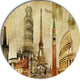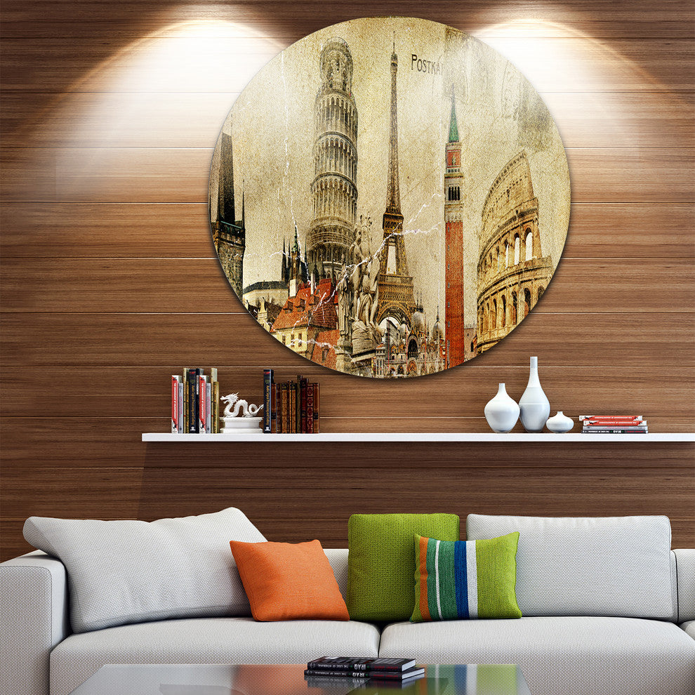 Vintage Postal Card, Contemporary Round Metal Wall Art, 36"