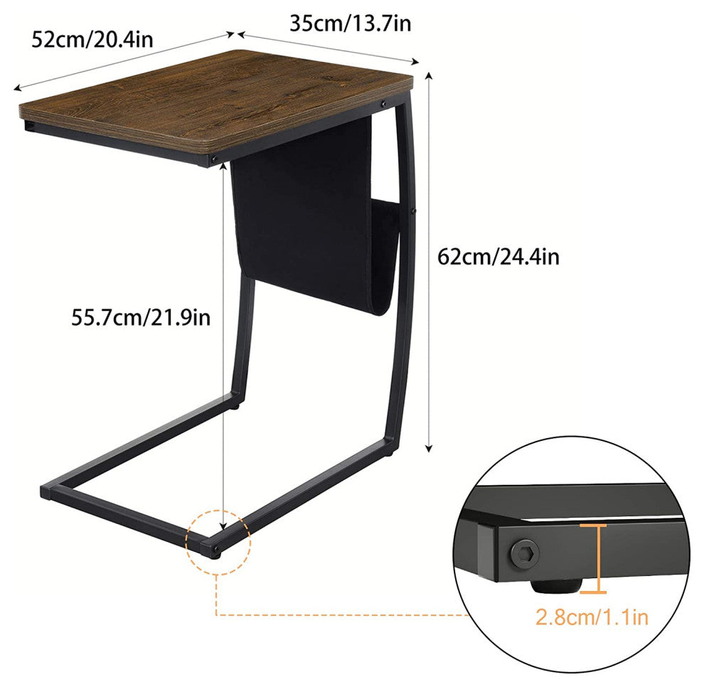 C Table with Side Pocket - Crafted with a C frame, this end table can slide under a sofa or couch for your convenience. Equipped with a side bag, this sofa table offers you extra space to store your newspapers, magazines and books while saving your space.