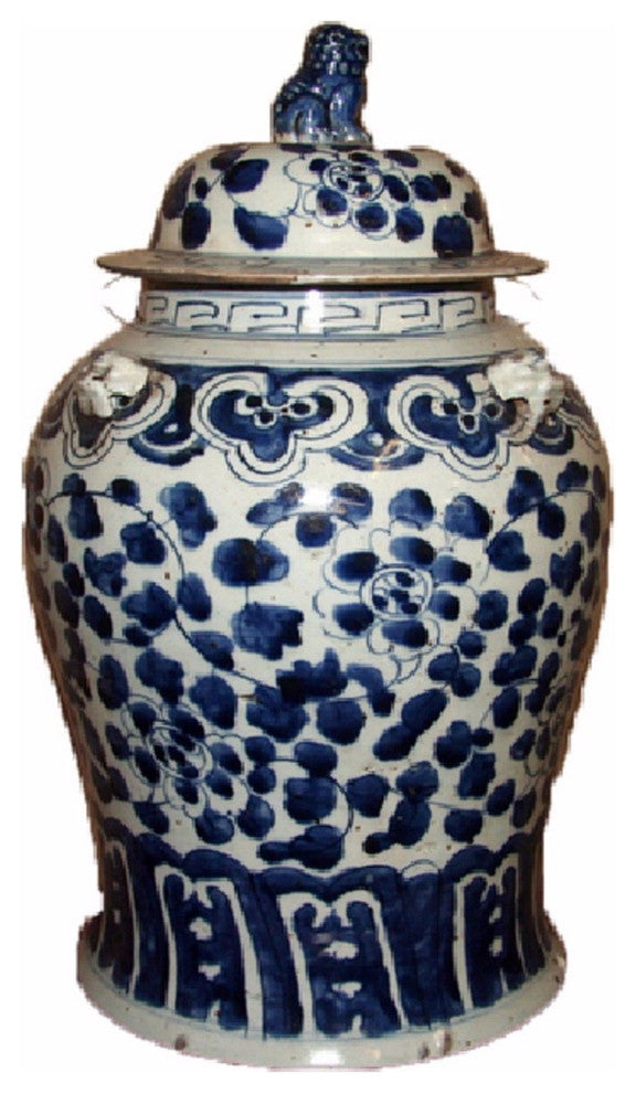 Vintage Style Blue and White Floral Motif Porcelain Temple Jar 19"
