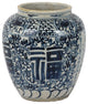 Vintage Style Reverse Blue and White Porcelain Lucky Motif Flower Vase 8"