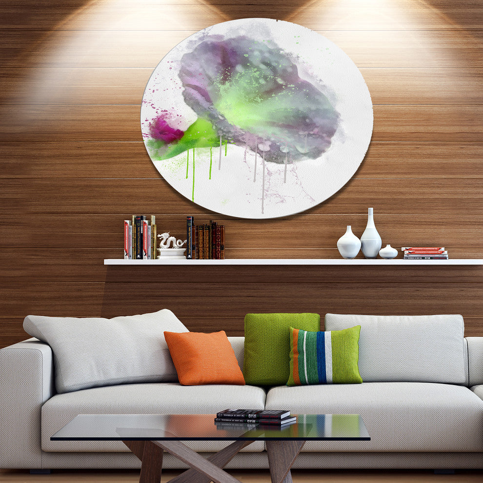 Bring Contemporary Abstraction to your home with this large Circle Metal wall art. This Violet Gentiana Alpina Watercolor Metal Artwork makes it the focal point of any room or office.