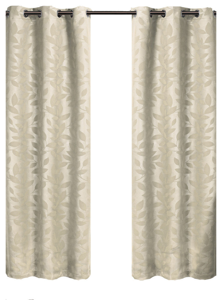 Boost up your home''s interior decoration with this blackout curtain panels. Features nature inspired design on blackout curtain liner fabric which works decently to enhance your night''s sleep by blocking over 85-percent of light, reduce unwelcomed noise and save your spending on heating & cooling. A bright touch of style for a restful nights of sleep.- Royal Tradition Collection- 100-Percent Polyester Of Black-out Curtain liner Fabrics- Diminishes outdoor light and noise- Blackout Embossed fabric weave- Leafy designs on curtain liner fabric- Blocks over 85% of light than ordinary curtains- Saves on home heating and cooling costs- Sold in Pairs (Each package contains two panels)- Machine-washable Easy CareAvailable Sizes Include:- 74"W x 63"L Pair (37" x 63" each)- 74"W x 84"L Pair (37" x 84" each)- 74"Wx 96"L Pair (37" x 96" each)- 74"Wx 108"L Pair (37" x 108" each)