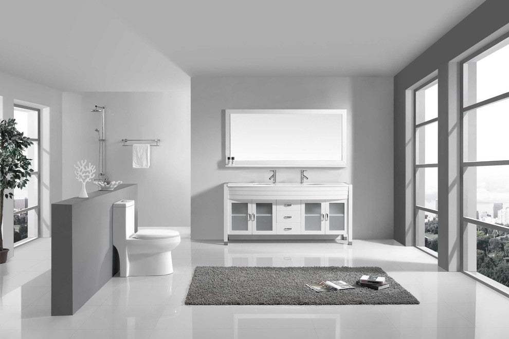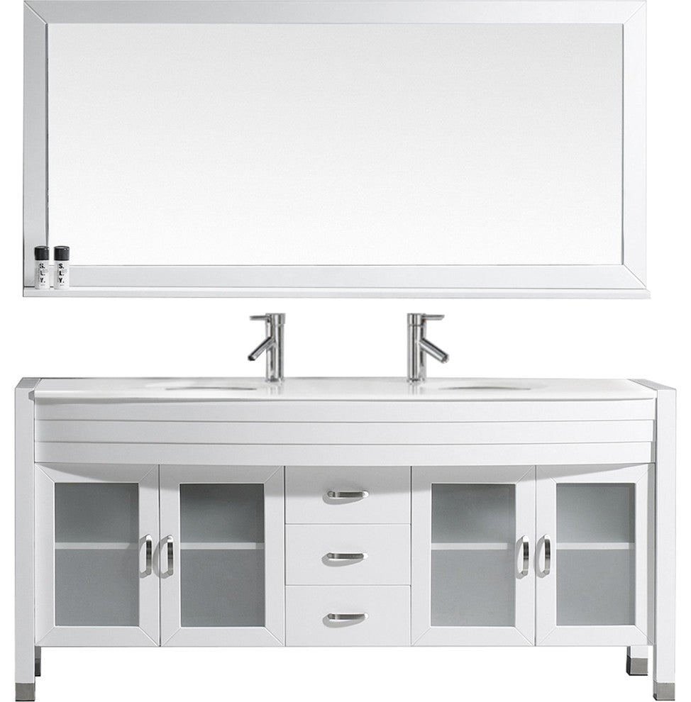 Virtu Ava 71" Double Bathroom Vanity, White With White Top, Faucet and Mirror