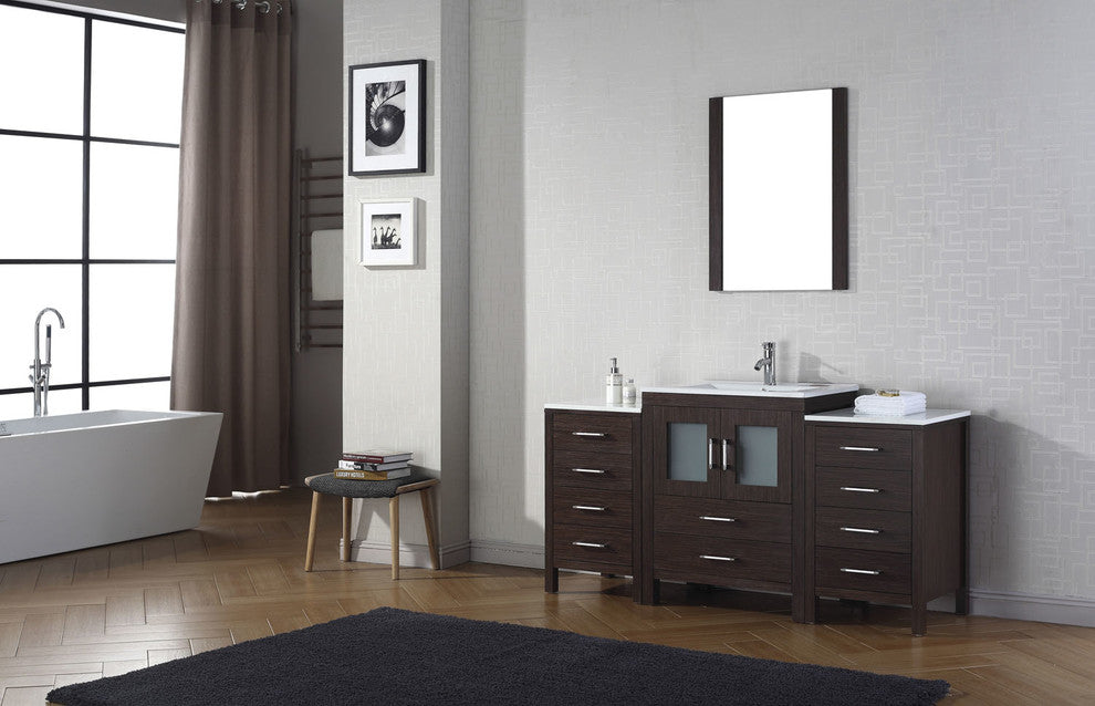 Virtu Dior 64" Single Bathroom Vanity, Espresso, Polished Chrome Faucet, Mirror