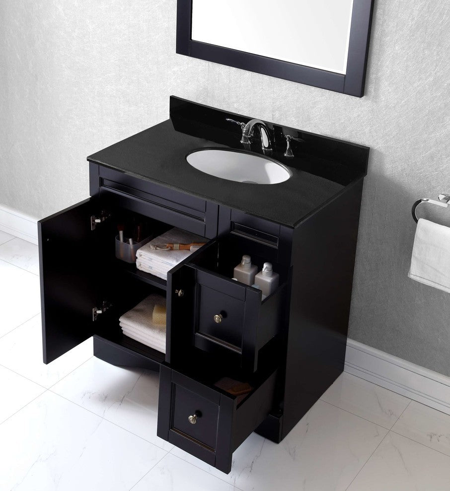 Virtu Elise 36" Single Bathroom Vanity, Espresso, Black Granite Top, Mirror