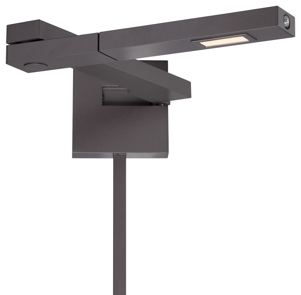 Flip LED Left Swing Arm in Bronze. A clever LED swing arm reading light that folds-in completely to neatly and orderly fit within modern design elements. Integral memory touch dimmer conveniently located for fingertip control.Features: - Bauhaus-style geometry & aluminum construction in a left and right paired design. - Two 12 inch cord covers included. - ETL & cETL damp location listed. - Integral driver with fingertip dimming included. - For hard-wired and portable (8 foot cord) installations, cord and cord covers included. - Color Temp: 3000K, CRI: 85, Dimming : 100% - 10% (Integral dimmer), Rated Life : 30,000 hours.Bulb Type: LEDBulb Base: LED ModuleNumber of Bulbs: 1Watts per Bulb: 8.5Total Wattage: 8.5Bulbs Included: YesDimmable: YesBackplate/Canopy DimensionsHeight: 4"Width: 4"Depth: 0.5"Light assembly required on finials, back plates, and shades.