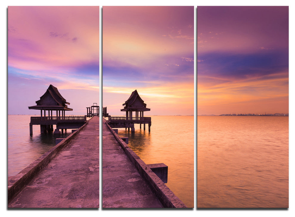 "Walking Path to Abandoned Temple" Sea Bridge Metal Wall Art, 3 Panels, 36"x28"