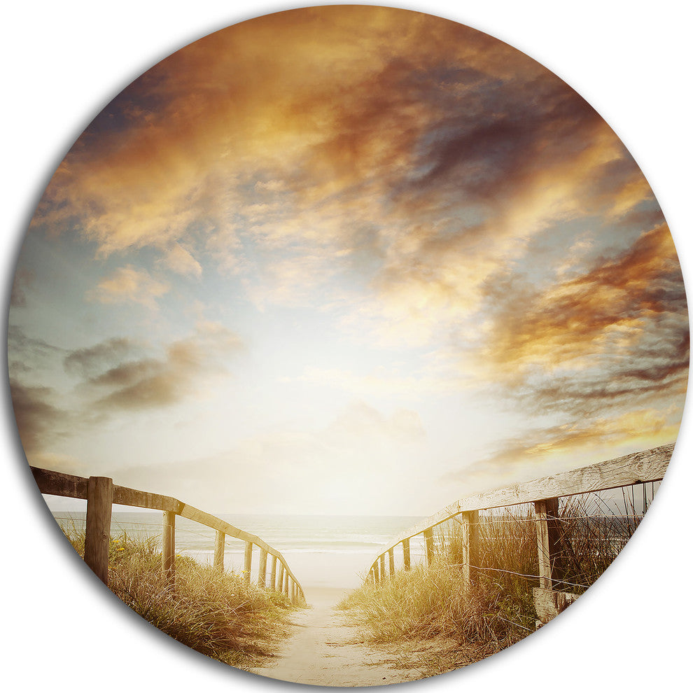 Walkway Leading To Beach Scene, Sea Bridge Disc Metal Artwork, 36"