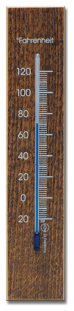 Wall Thermometer Walnut Finish• Easy To Read Thermometer• Dimensions: 7.88 x 1.5 x 0.38 in.• Temperature Range: -20 to 120 ºF• Solid Beech Wood• Made in Germany