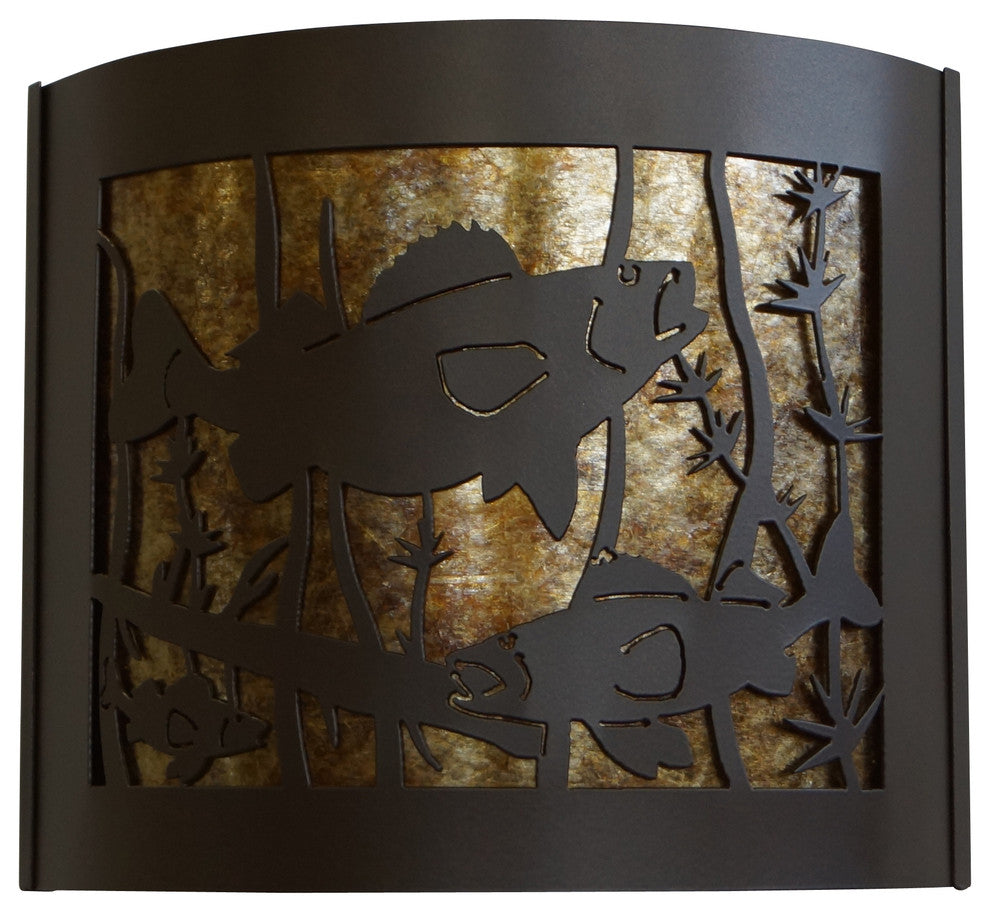 Create a relaxing atmosphere with this versatile decorative wildlife sconce. The curved metal wall sconce is powder coated Cappuccino and has a removable front panel. A mica shade provides a soft amber glow to illuminate stairways and hallways. It''s a beautiful accent around doorways and fire places creating a soothing ambiance in any room.